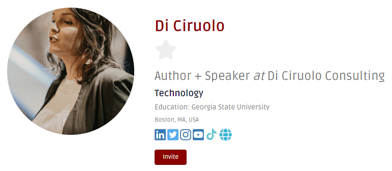Every week we welcome our new and renewing members in our newsletter. (Well, at least the ones who add their picture and fill out the profile right away.) Event managers can invite these speakers (and others) to speak at their events by signing up for a free account on the Innovation Women website.