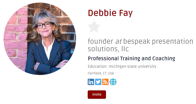 Every week we welcome our new and renewing members in our newsletter. (Well, at least the ones who add their picture and fill out the profile right away.) Event managers can invite these speakers (and others) to speak at their events by signing up for a free account on the Innovation Women website.