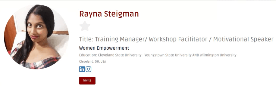 Every week we welcome our new and renewing members in our newsletter. (Well, at least the ones who add their picture and fill out the profile right away.) Event managers can invite these speakers (and others) to speak at their events by signing up for a free account on the Innovation Women website.